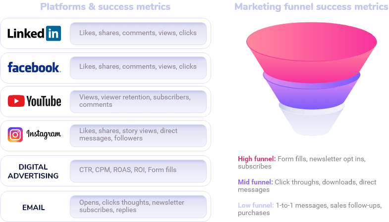 Each type of content has different metrics to define success with, and what part of the funnel that content is targeting further determines what success can look like.